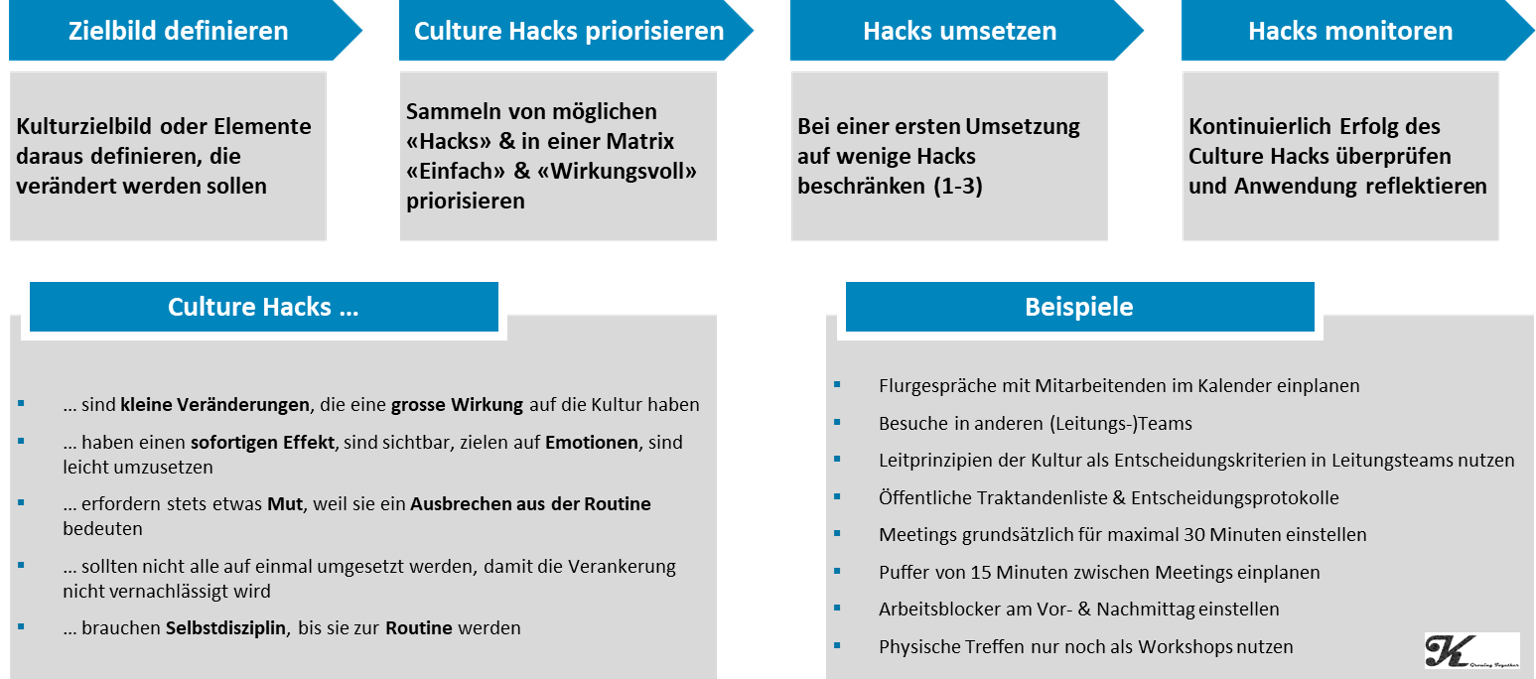 Die untenstehende Grafik zeigt auf, die solche „Culture Hacks“ umgesetzt werden können.