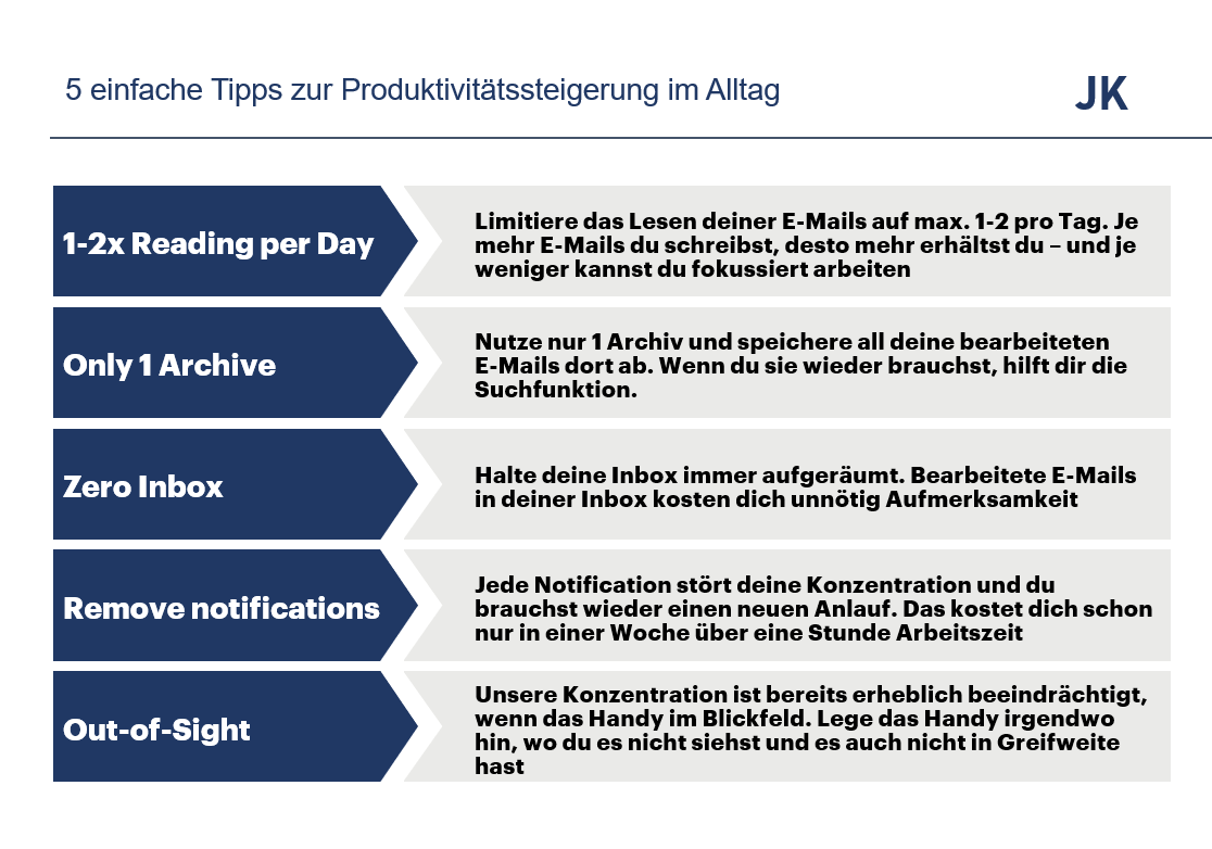 Meinst du mit dem 1. Punkt 1-2 Mails pro Tag oder 1-2 Stunden mit Mails?