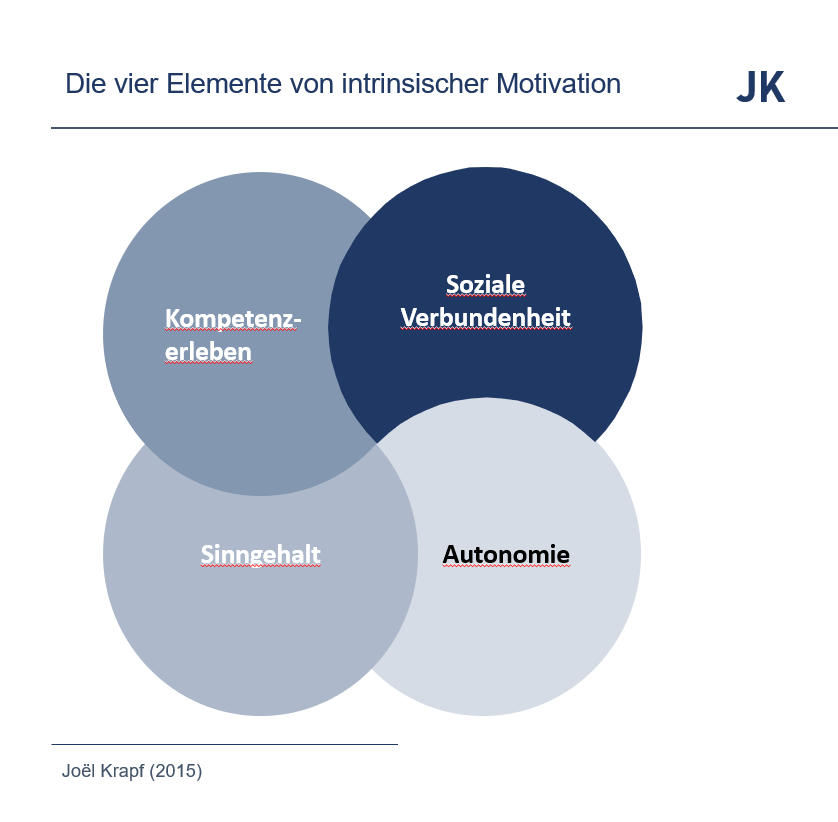 Drei Elemente entstammen der Selbstbestimmungstheorie von Deci/ Ryan. Doch wo kommt das vierte Element („Sinngehalt“) her? VG, Jochen Robes Antworten